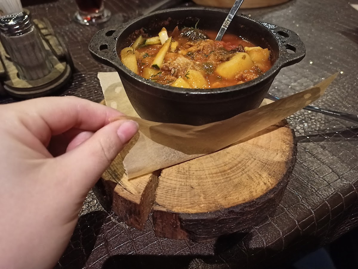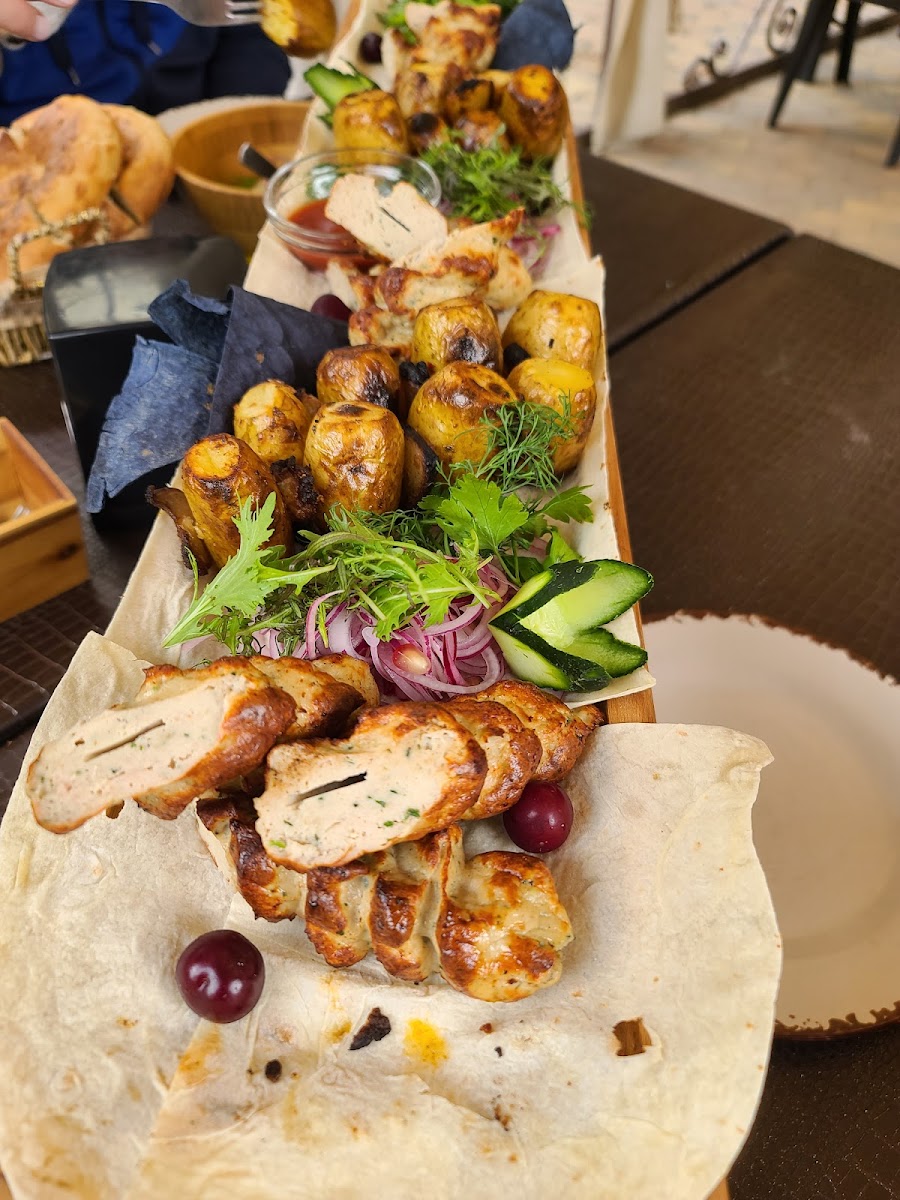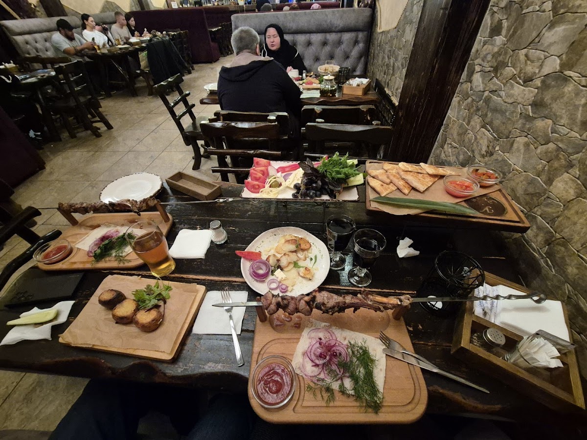 Stop by for a dinner, good atmosphere and welcoming staff. We took bbq from lamb and kebab with grilled vegetables, everything was fresh and delicious. Meat was cooked properly and was very soft. Adjika homemade amazing! Highly recommended.